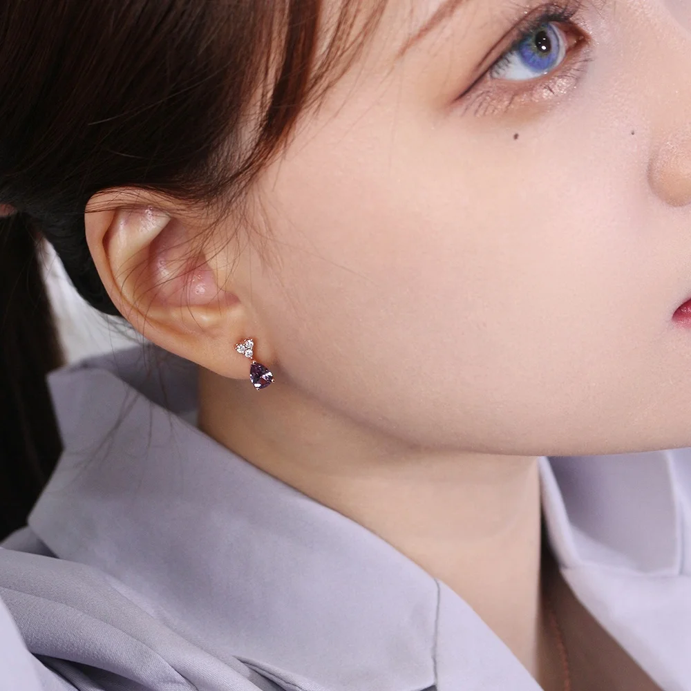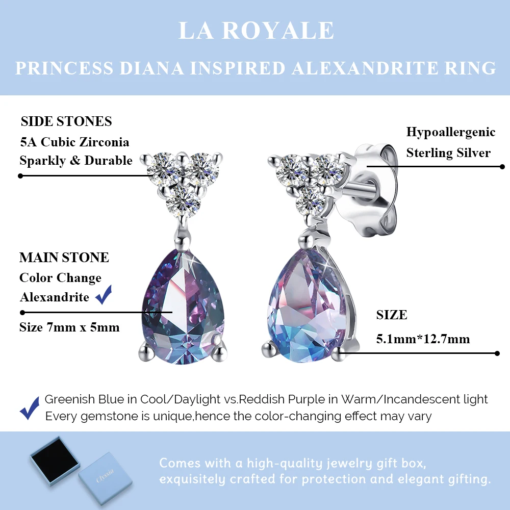 Color Change Alexandrite Gemstone Triangle Tear Drop Stud Earrings for Women Nickel Free Hypoallergenic Jewelry